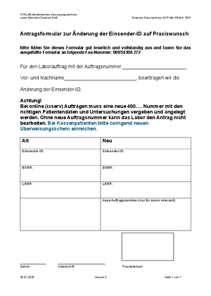 Antragsformular zur Änderung der Einsender ID auf Praxiswunsch